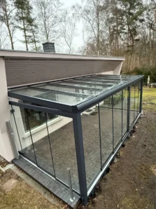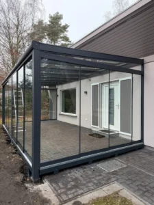 Dieser Aluminium-Wintergarten nach Maß in RAL 7016 FS bietet einen hellen und komfortablen Rückzugsort für jede Jahreszeit. Mit den großzügigen Abmessungen von 7 × 4 Metern entsteht ein einladender Raum für Entspannung, Familienzeit oder gemütliche Abende mit Freunden. Das moderne Design fügt sich harmonisch in die Architektur des Hauses ein, während die robuste Aluminiumkonstruktion für Langlebigkeit und geringen Wartungsaufwand sorgt. So wird der Garten zu einer natürlichen Erweiterung des Wohnraums.
