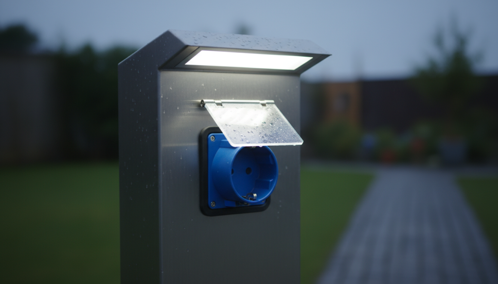 - Stromanschluss: Integrieren Sie eine CEE-Steckdose an einem der Pfosten. So können Sie die Batterien laden, ohne Kabel durch den Garten zu legen.